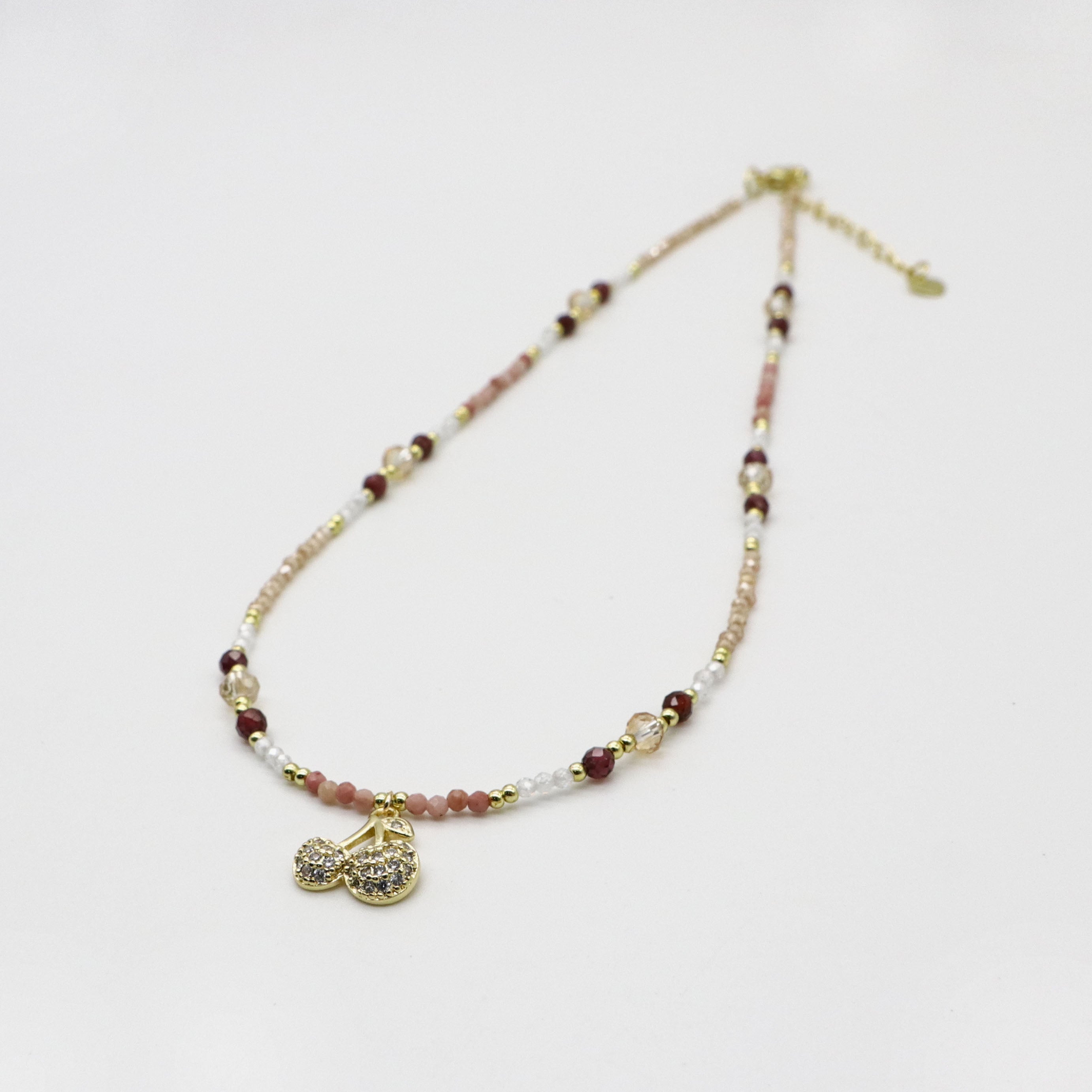 Nice 2mm Faceted Champagne Gold Zircon With Strawberry Pendant Necklace & Bracelet Set