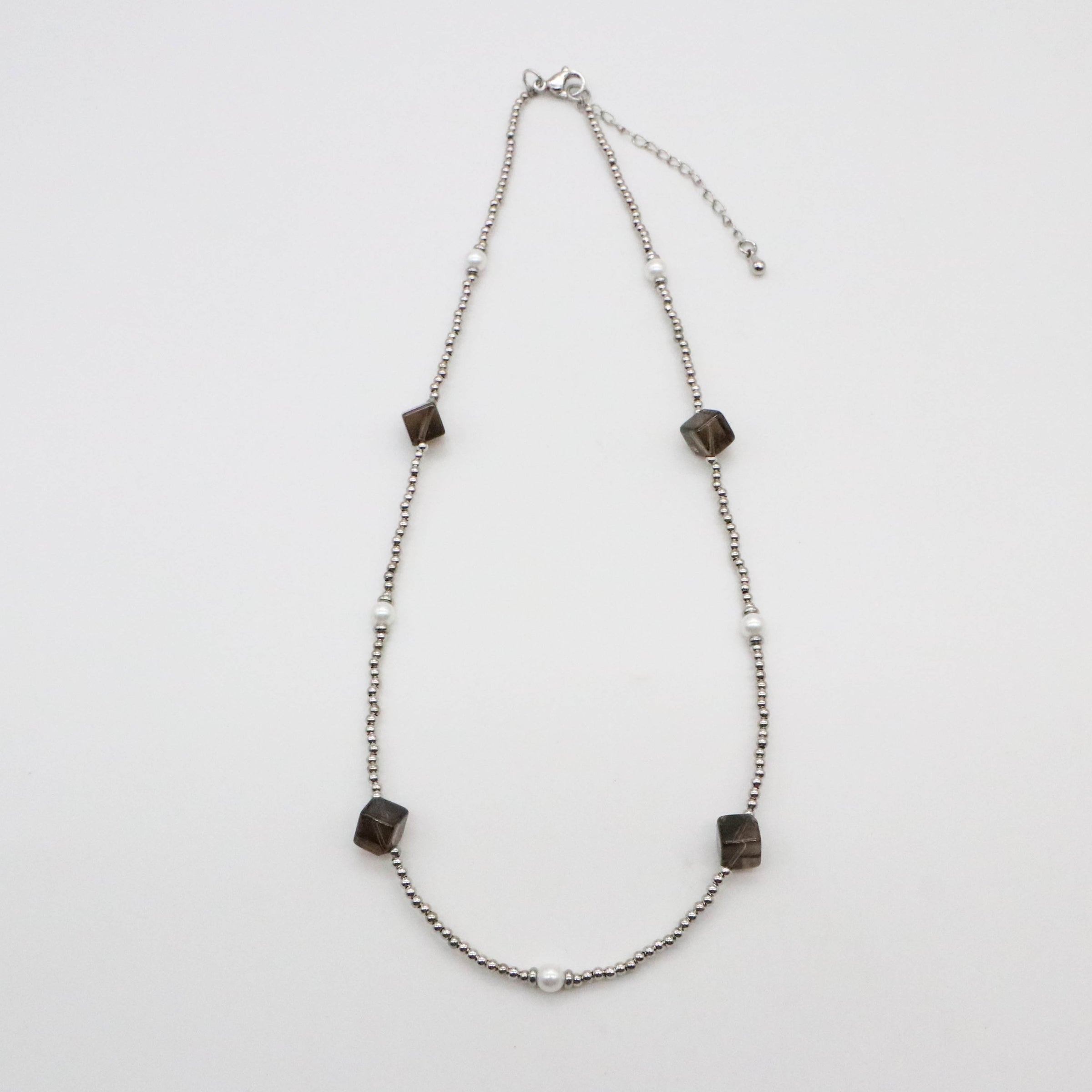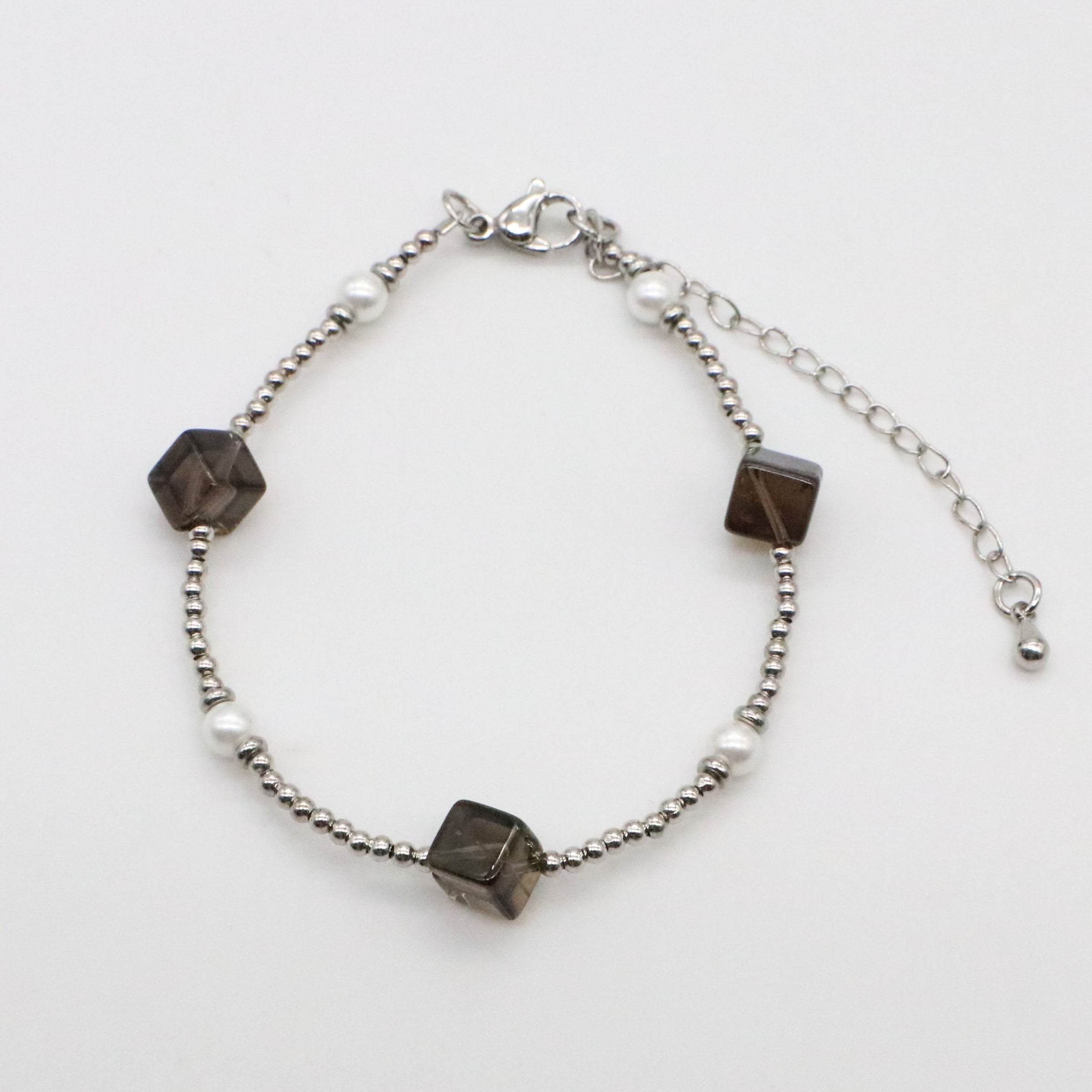 Material:6mm Squared Smoky Glass Beads, 4mm Mop Pearl