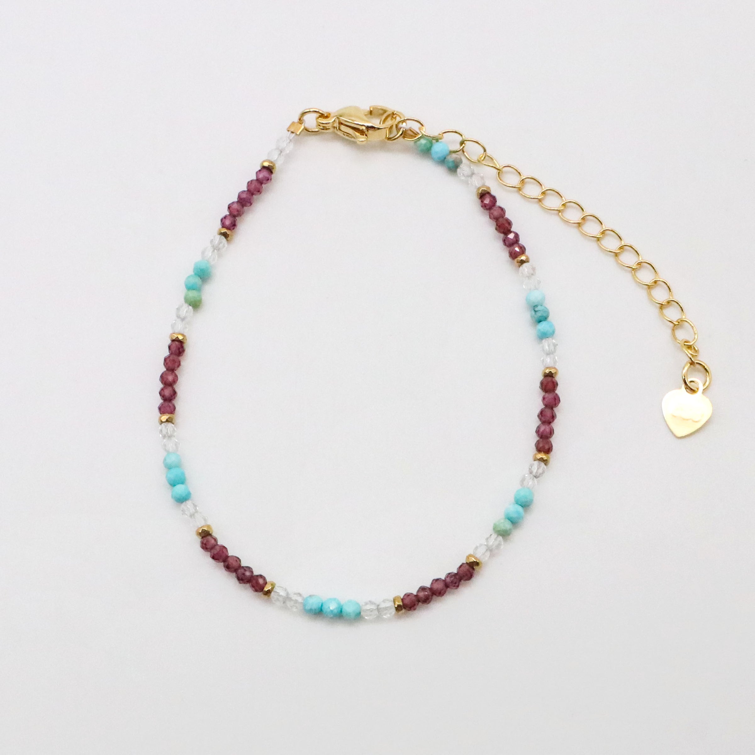Material: 2mm Faceted Turquoise Beads,2mm Faceted Garnet
