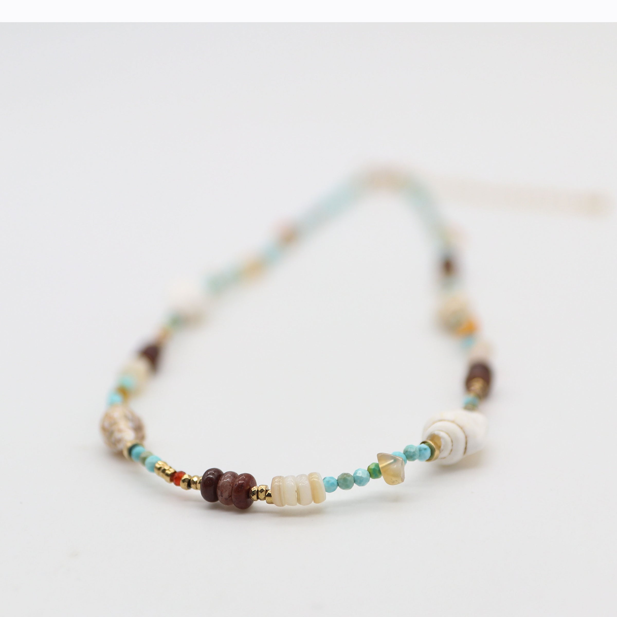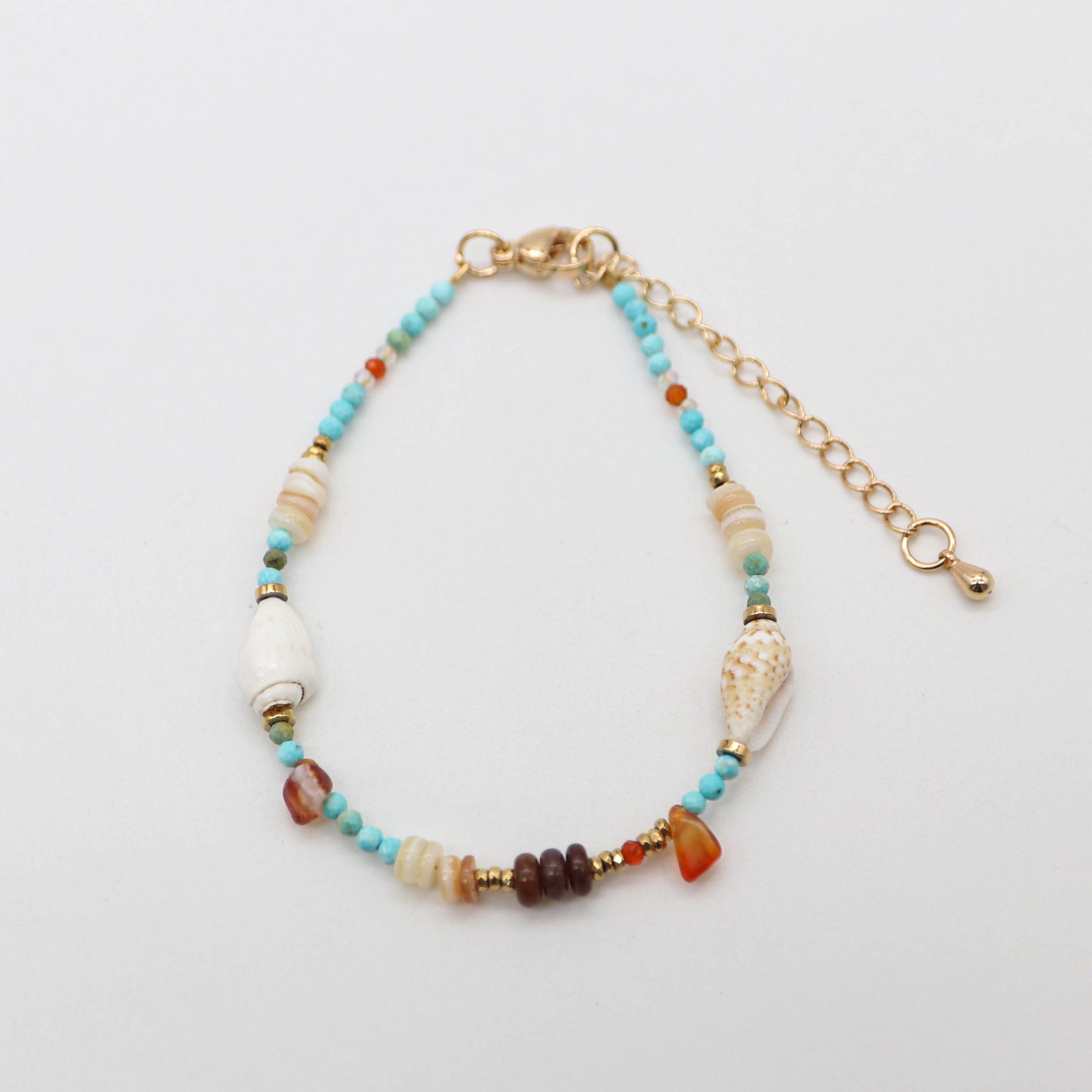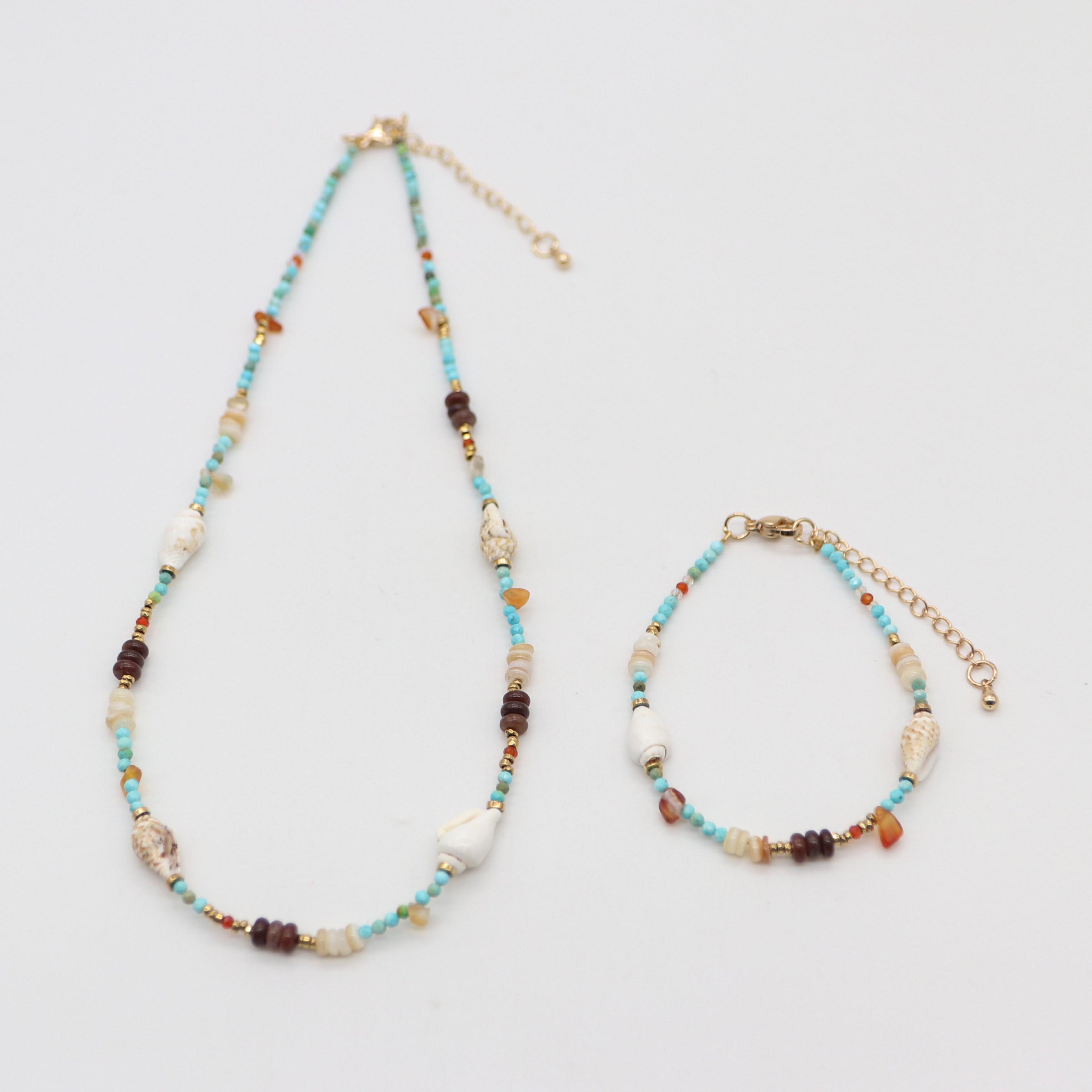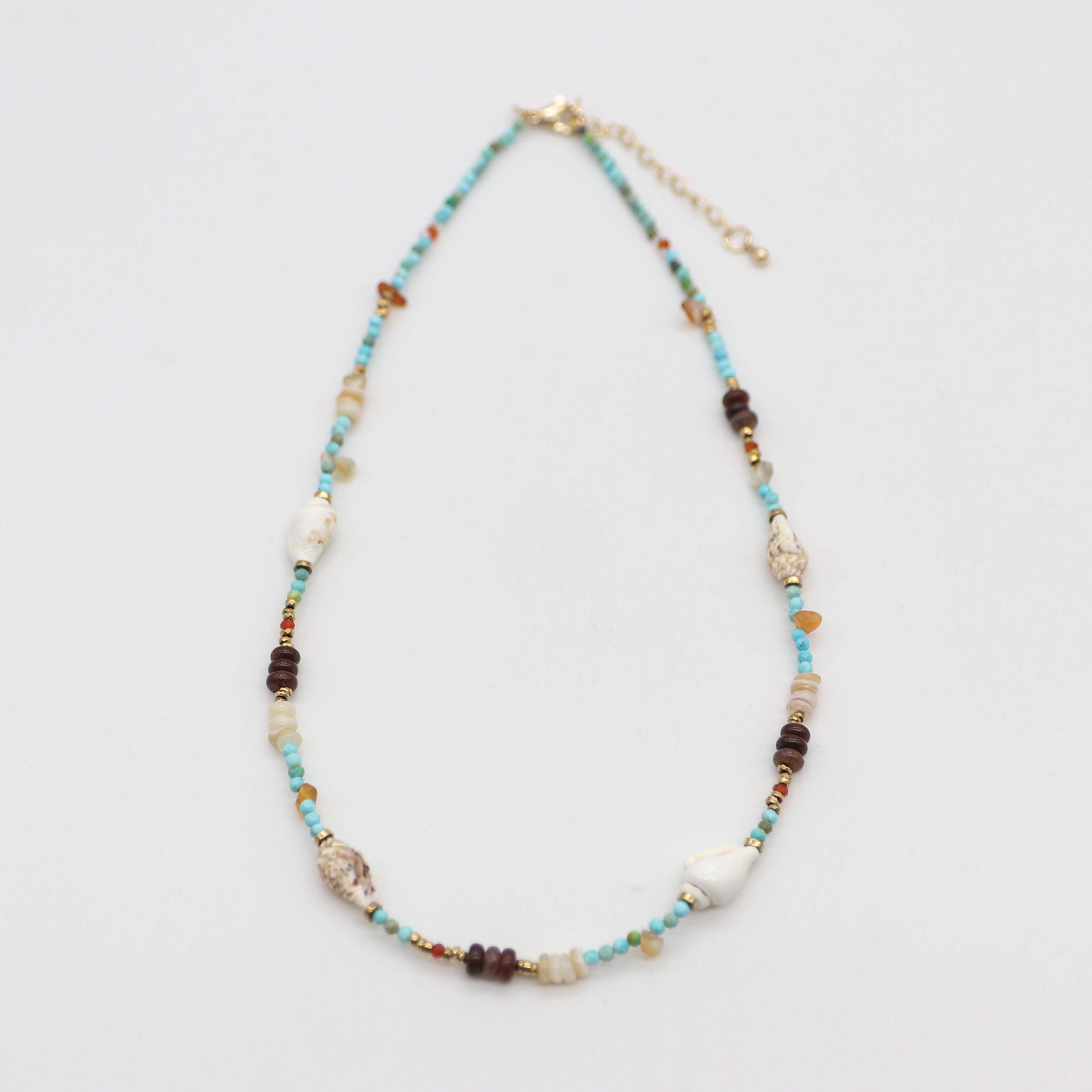 Material: 2mm Faceted Turquoise Beads, Natural Conch Shells