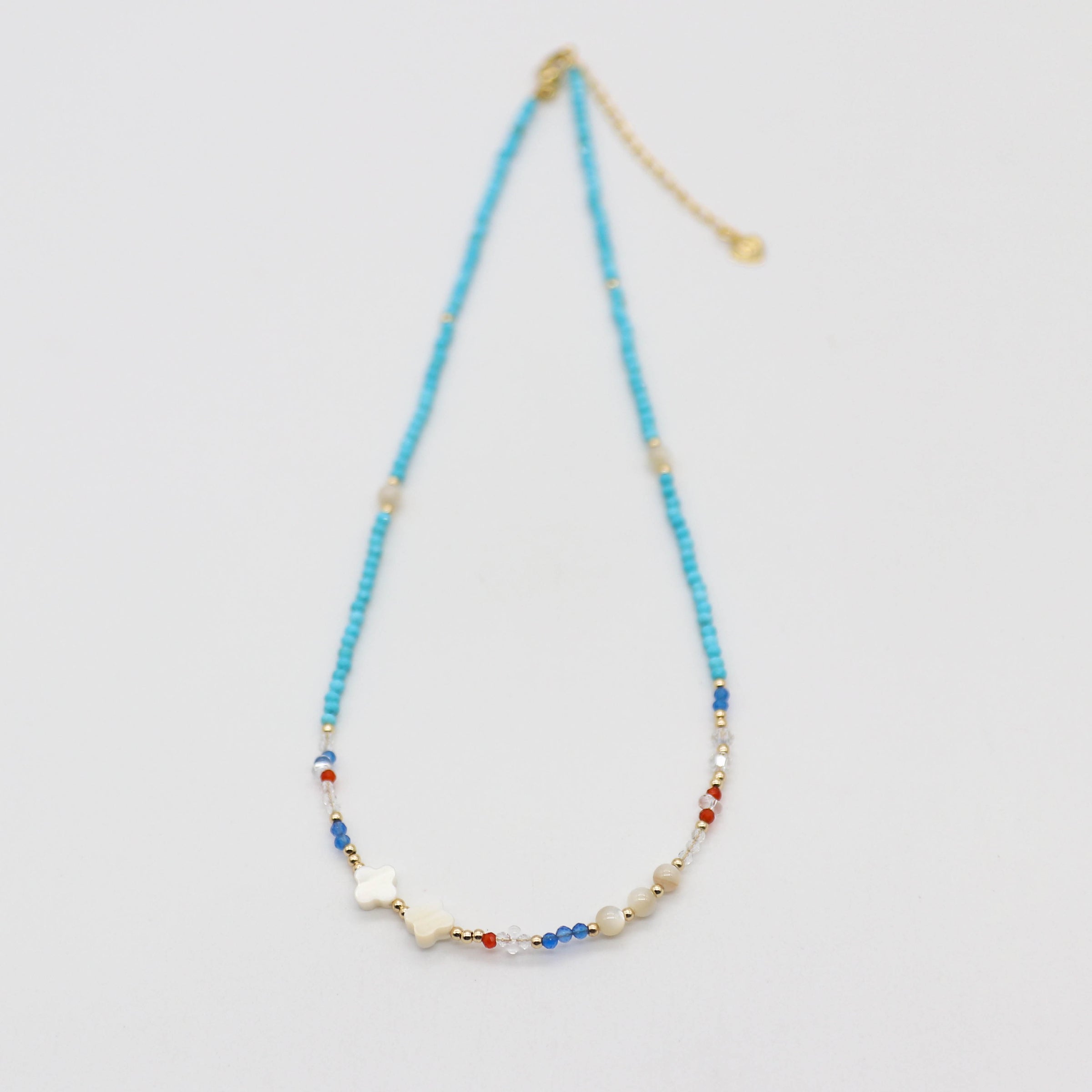 Material: 2mm Faceted Turquoise Beads, 7mm mop Clover.