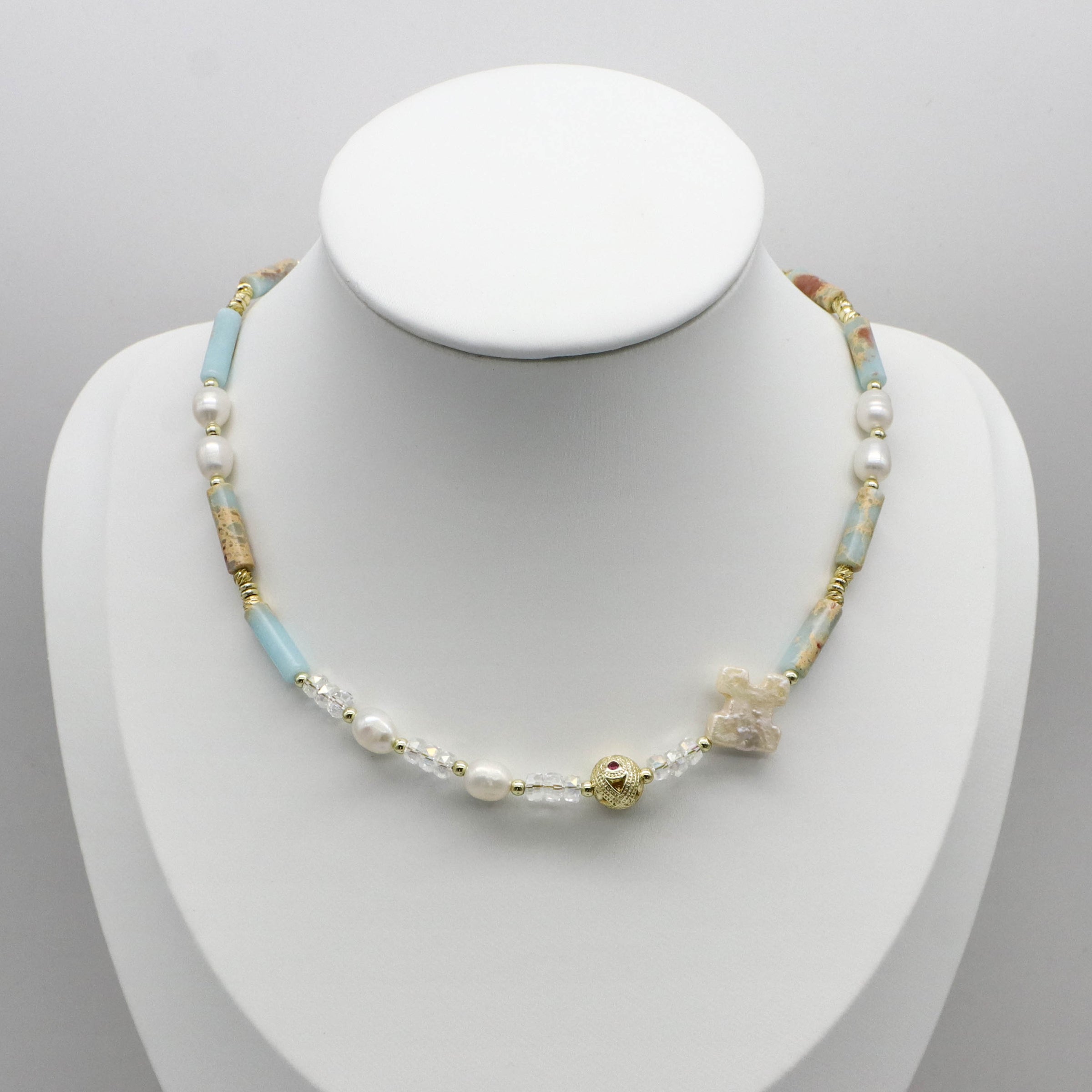 Bohemian Style Irregular Pearl With Imperial Jasper Choker