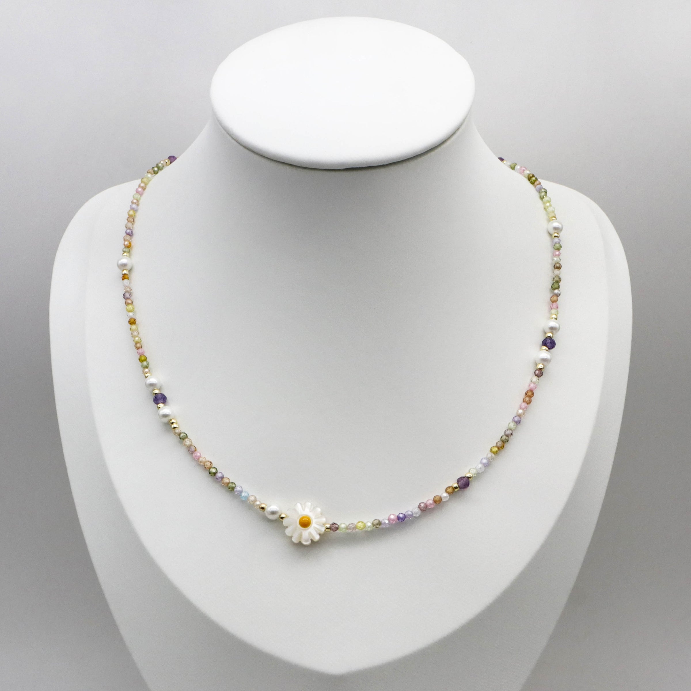 Material:2mm Faceted Colorful Zircon ; 4mm Mop Pearl