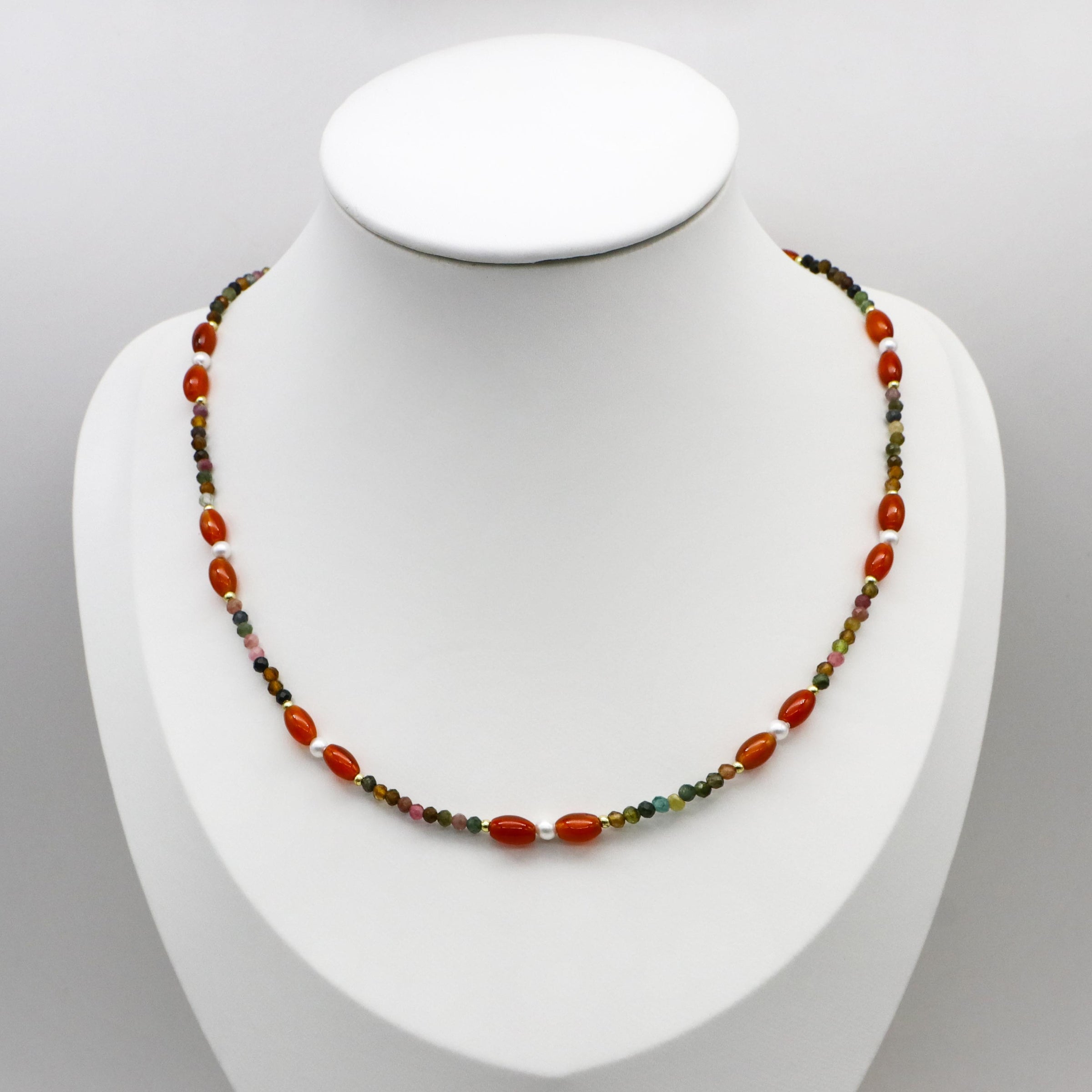 Material: 2 mm Faceted Tourmaline ; 4x6mm Red Agate