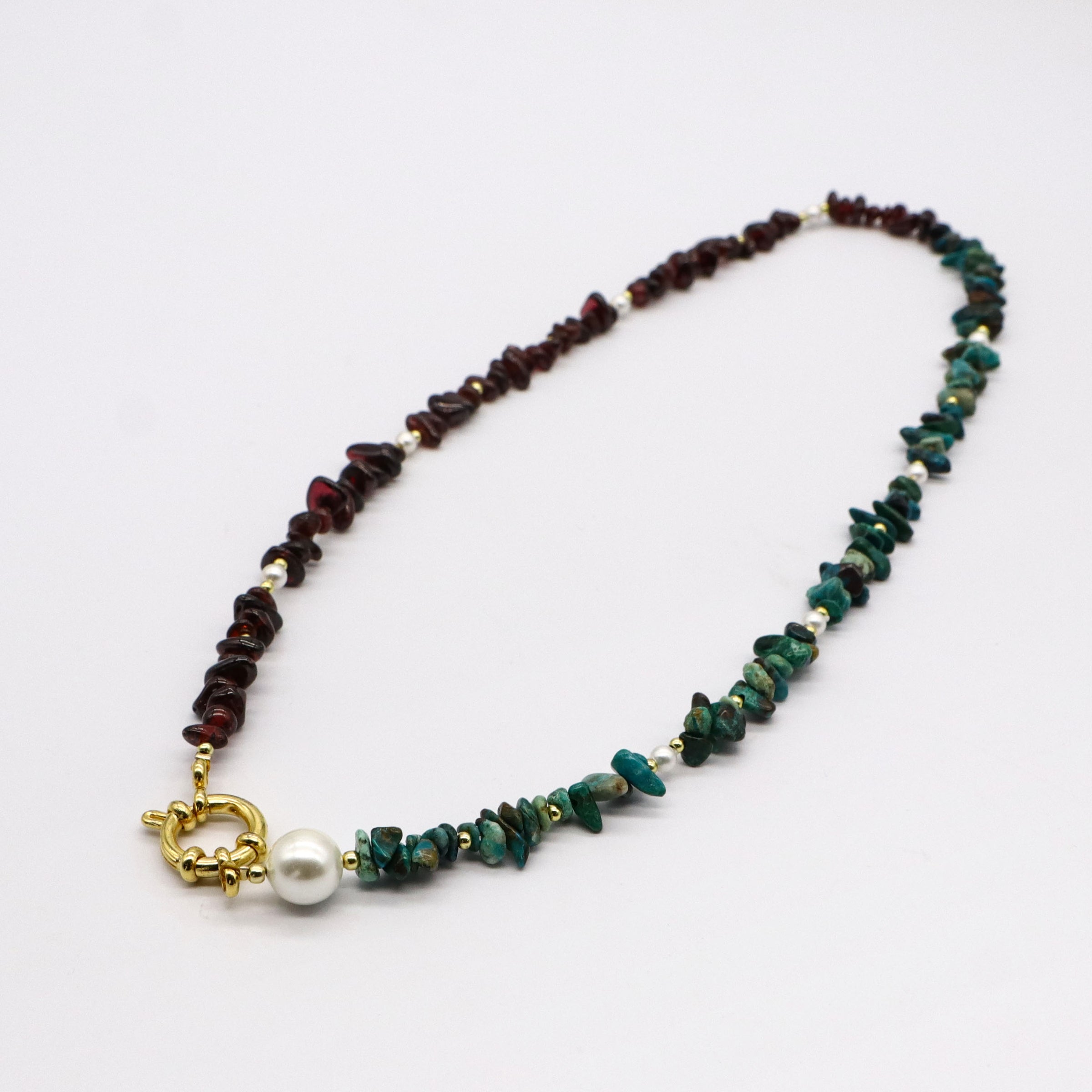 Luxurious Style Turquoise With Garnet Chips Necklace
