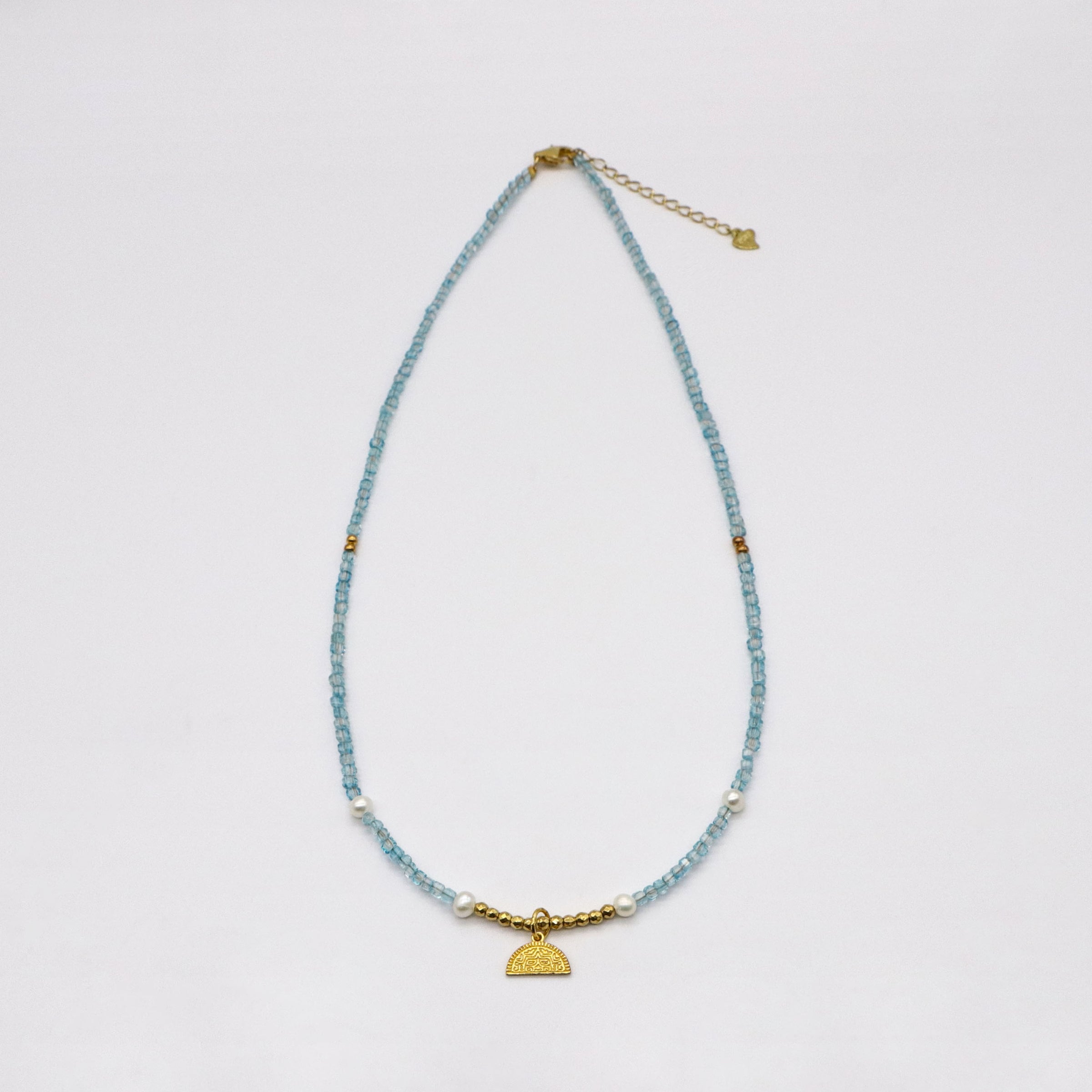 Simple Style Blue Topaz With Irregular Pearl Necklace