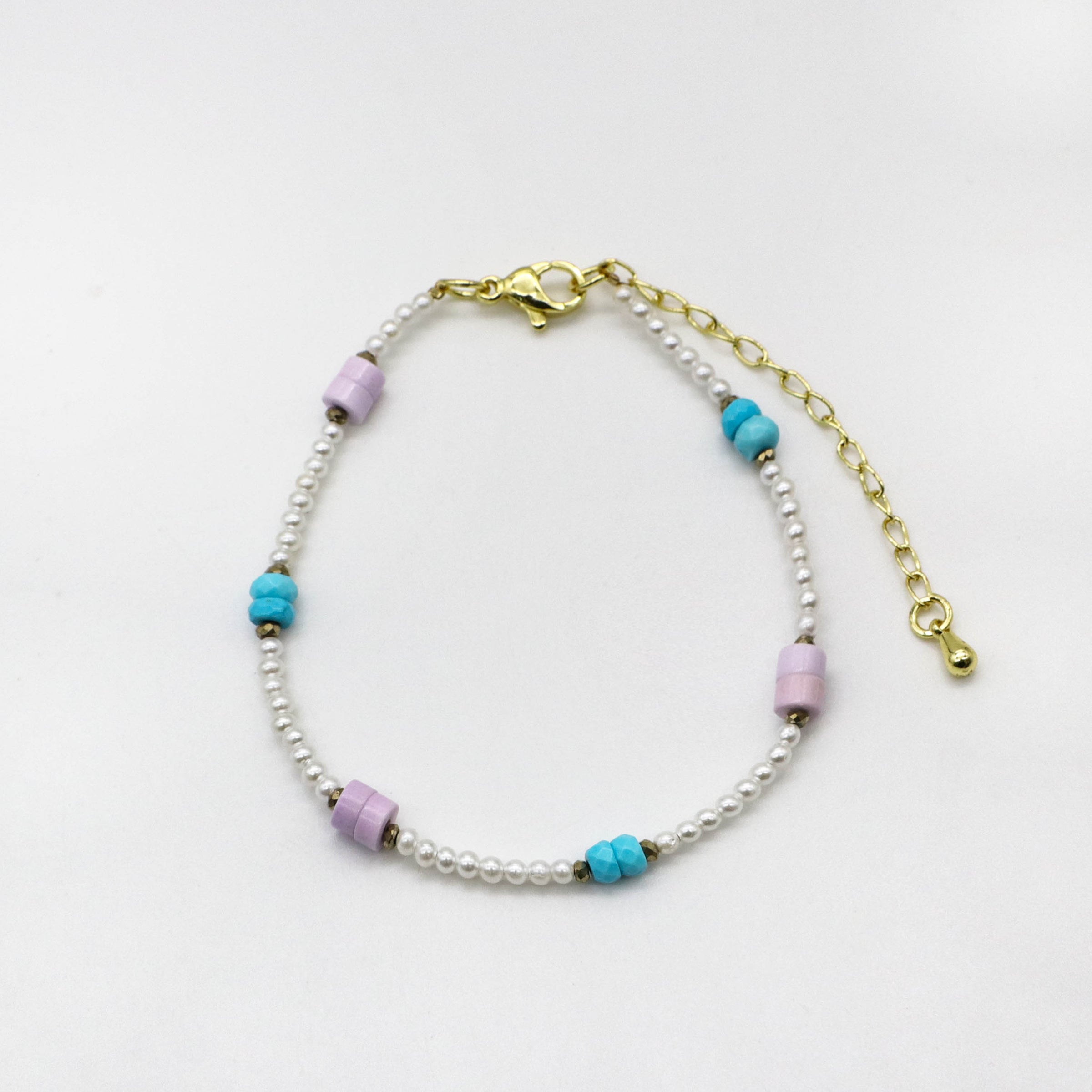 Material: 4mm Mop ; 2mm Mop Pearl ;2x4mm Faceted Turquoise