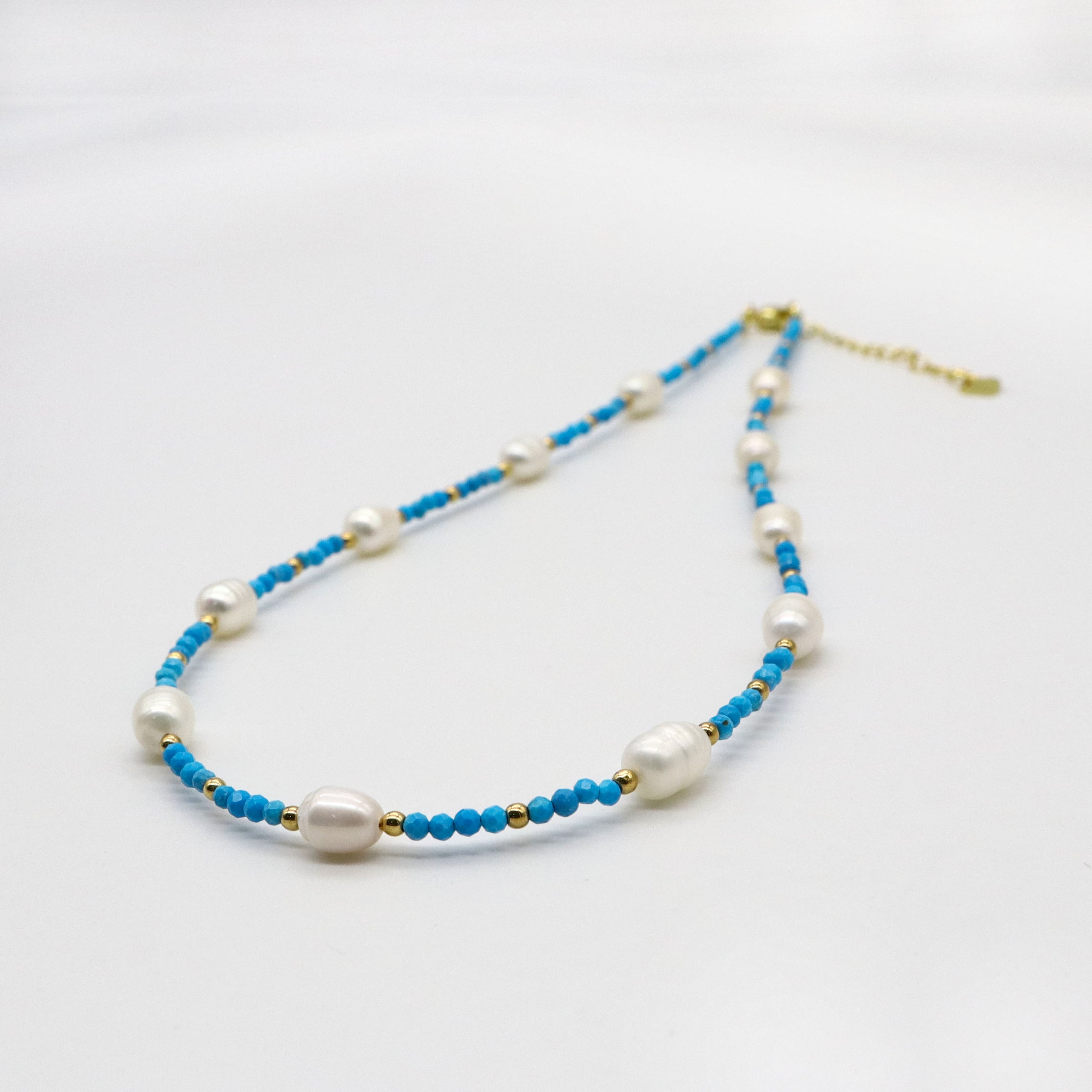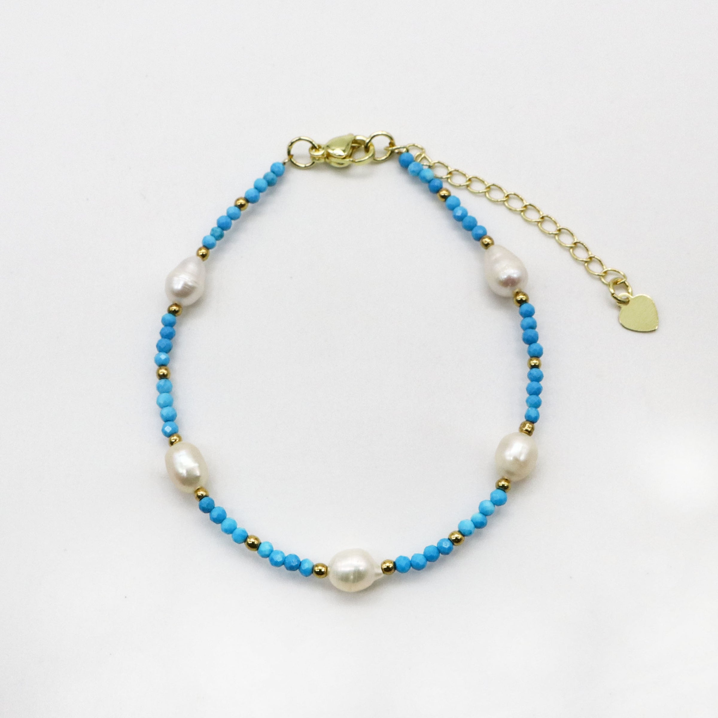 Material:7-8mm Irregular Pearls Beads; 2mm Faceted Turquoise