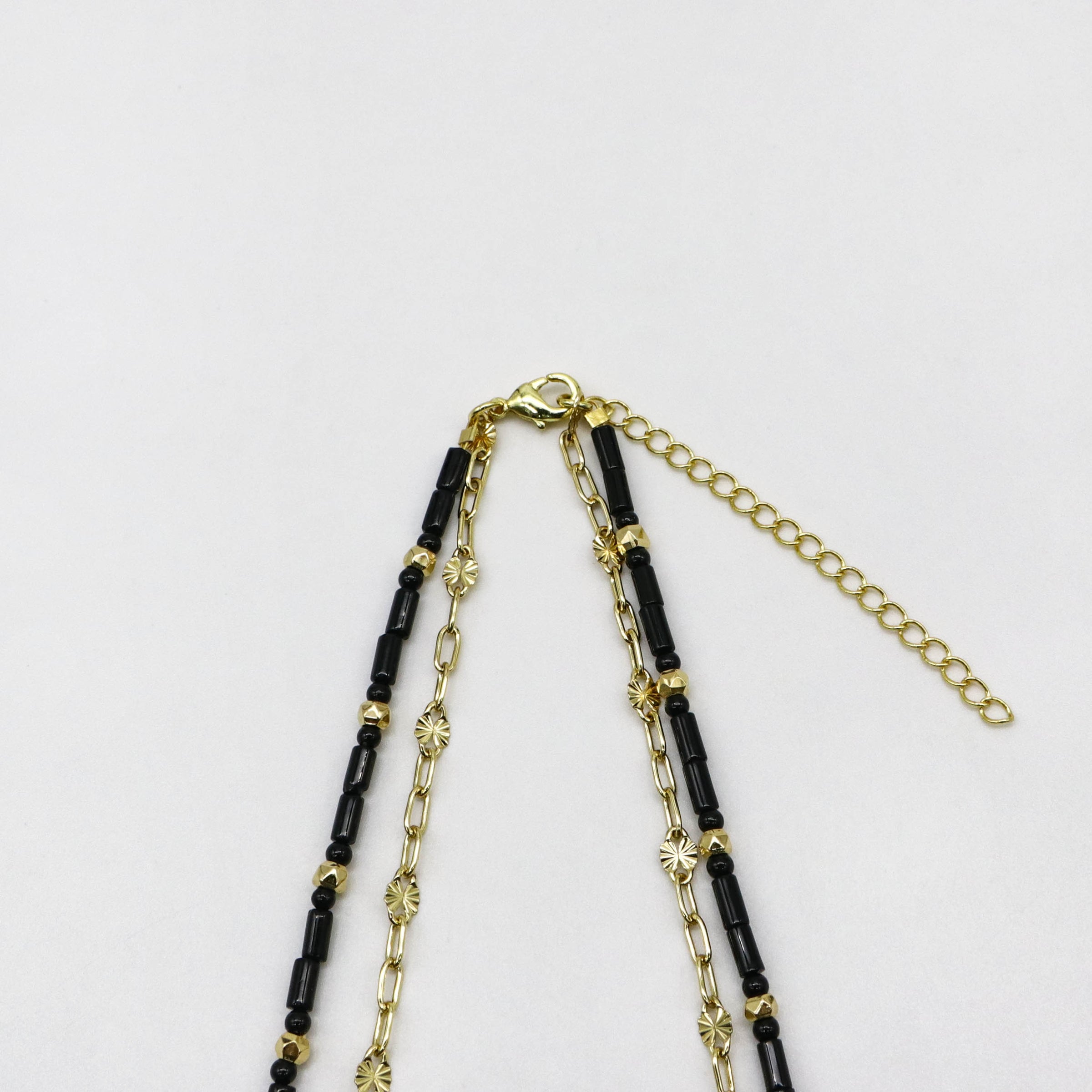 Material:2mm Black Agate Beads; 2x4mm Black Agate