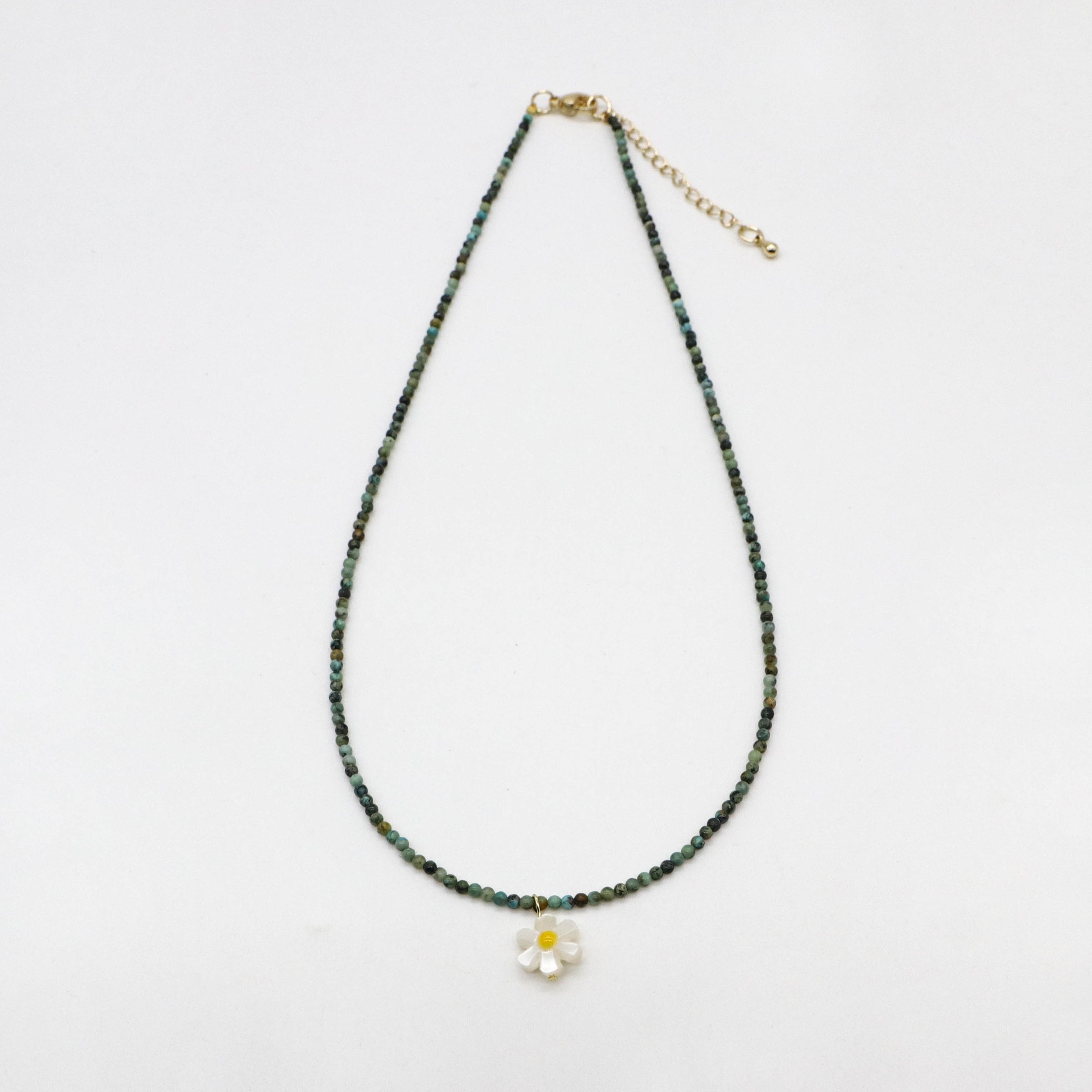Material:2mm Turquoise Beads; 9mm MOP Flower